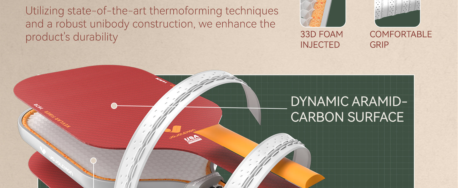 (2) The Kevlar paddle's material arrangement also offers consistent force distribution across the paddle, increasing dwell time for players to deliver spin in every shot.